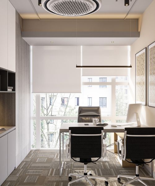 Proyek ini adalah desain interior untuk sebuah kantor di lingkungan perkotaan yang dirancang dengan konsep minimalis modern. Dinding beton ekspos dipadukan dengan jendela kaca besar memberikan kesan luas sekaligus memaksimalkan pencahayaan alami. Area kerja yang terbuka didukung oleh furnitur ergonomis dan penataan ruang yang fungsional, menciptakan suasana kerja yang produktif dan nyaman. Penambahan elemen hijau dari tanaman memberikan sentuhan segar yang menyatu dengan lingkungan sekitar. Proyek ini menonjolkan kemampuan kami untuk menghadirkan ruang kerja yang inspiratif dan efisien.